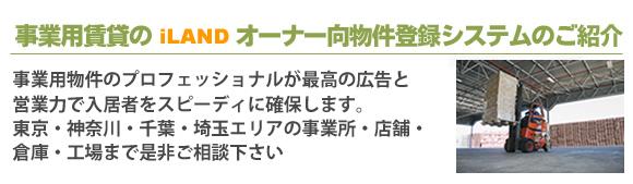首都圏8,900社の提携不動産会社にオーナー様の貸倉庫・貸工場・貸地を一括発信します。 |