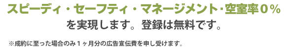 オーナー様の賃貸条件を登録して頂いたから1ヵ月間、当社のテナント事業部が集中的に募集活動を行います。 |