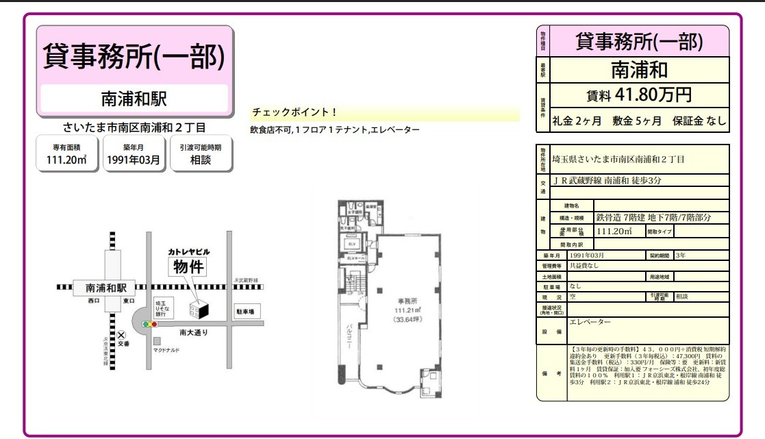 さいたま市南区南浦和2丁目 南浦和 事務所 詳細データ