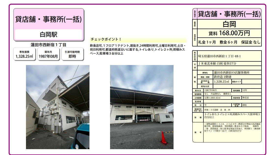 蓮田市西新宿1-48-1 蓮田市西新宿の店舗事務所 詳細データ