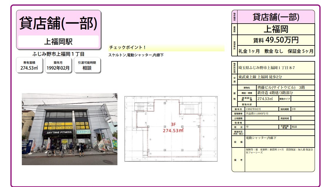 ふじみ野市上福岡1-8-7 齊藤ビル(サイトウビル) 詳細データ