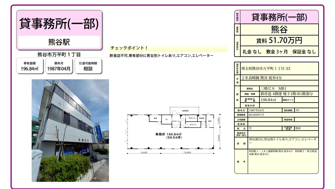 熊谷市万平町1-33 三晴ビル 詳細データ