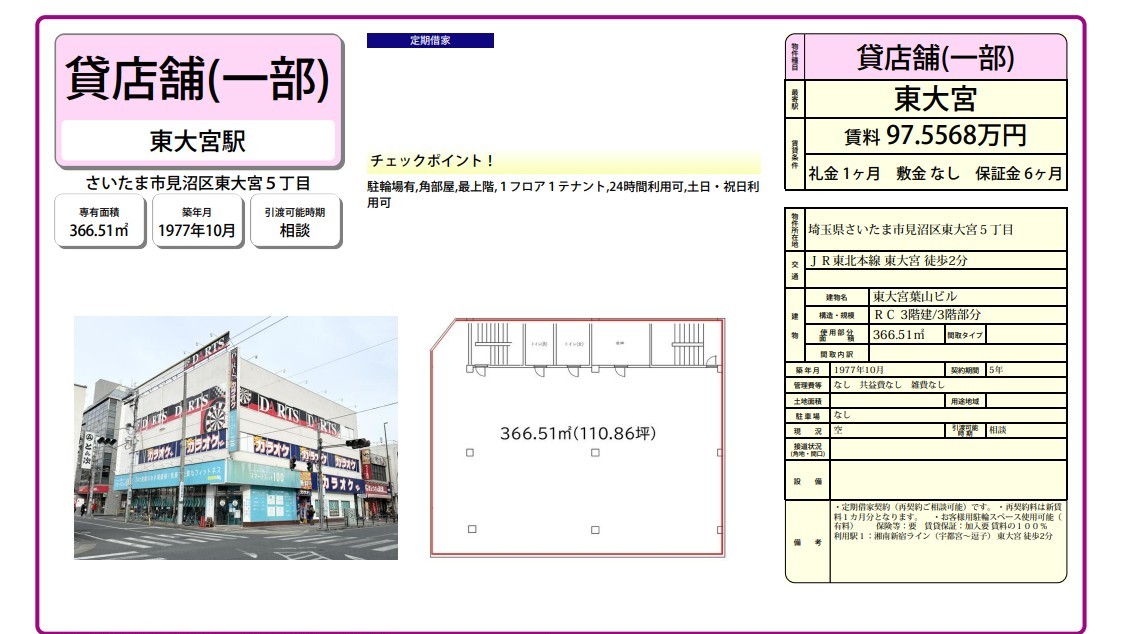 さいたま市見沼区東大宮5丁目 東大宮葉山ビル 詳細データ