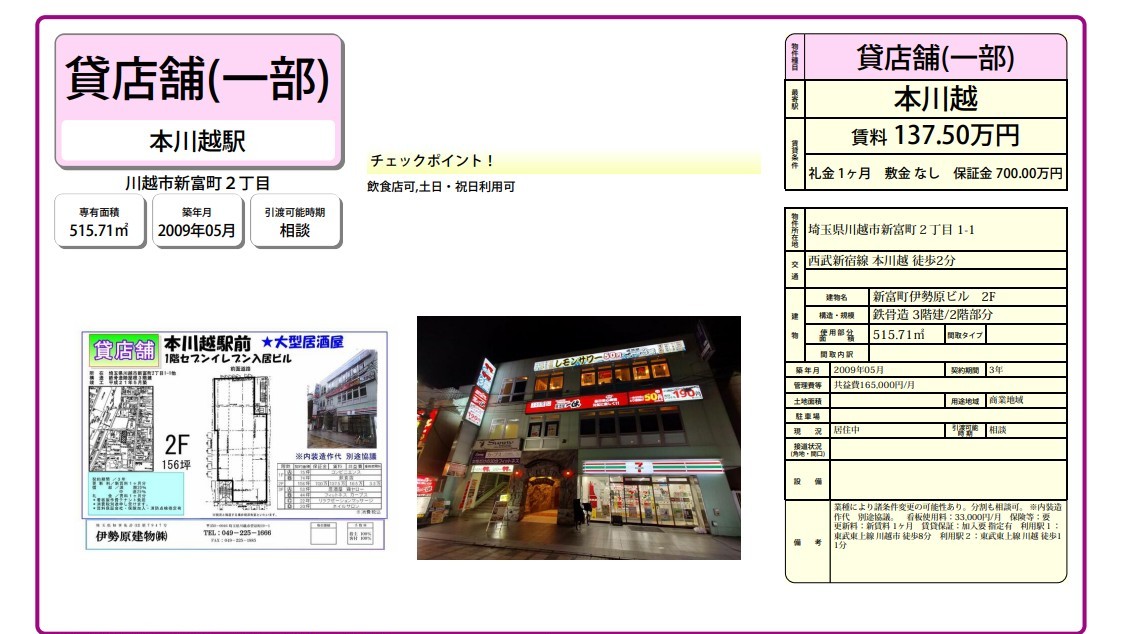 川越市新富町2-1-1 新富町伊勢原ビル 詳細データ