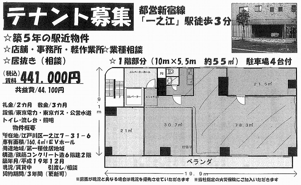 | 賃料(坪・円) | 坪 9,093 円 (総額 441,000 円) |