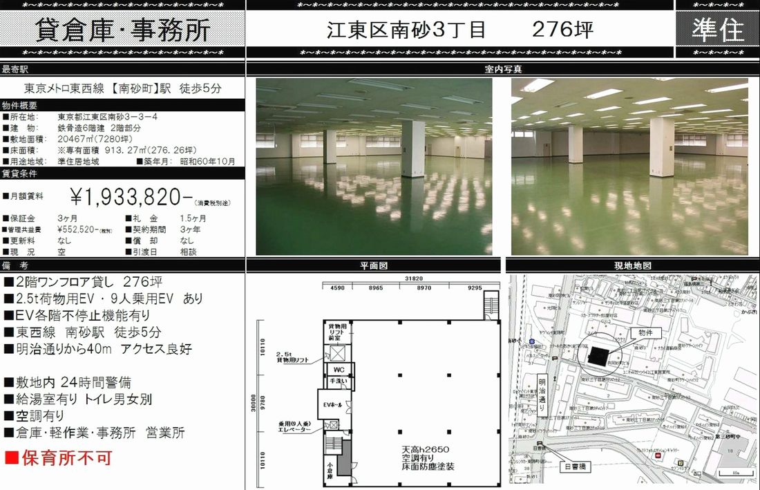 | 物件名 | 南砂町駅 貸倉庫 |