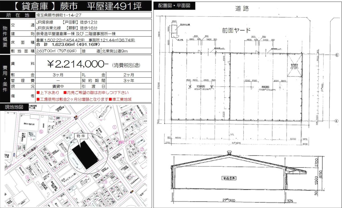蕨市錦町1-14-27 戸田駅 貸倉庫 詳細データ