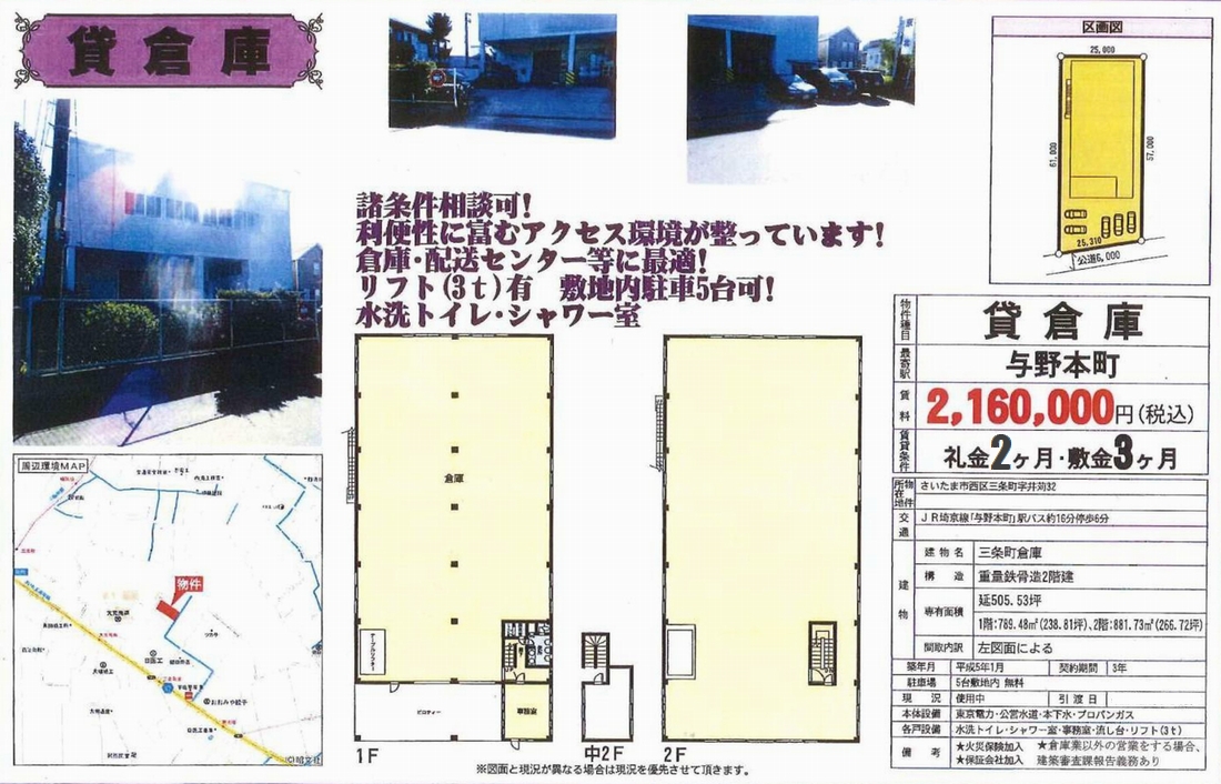 さいたま市西区大字三条町32 与野本町 倉庫 詳細データ