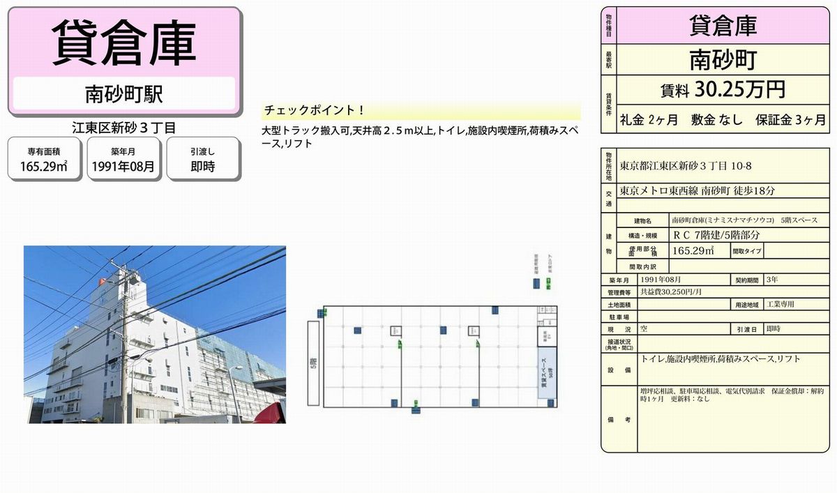江東区新砂3-10-8 南砂町 倉庫 詳細データ