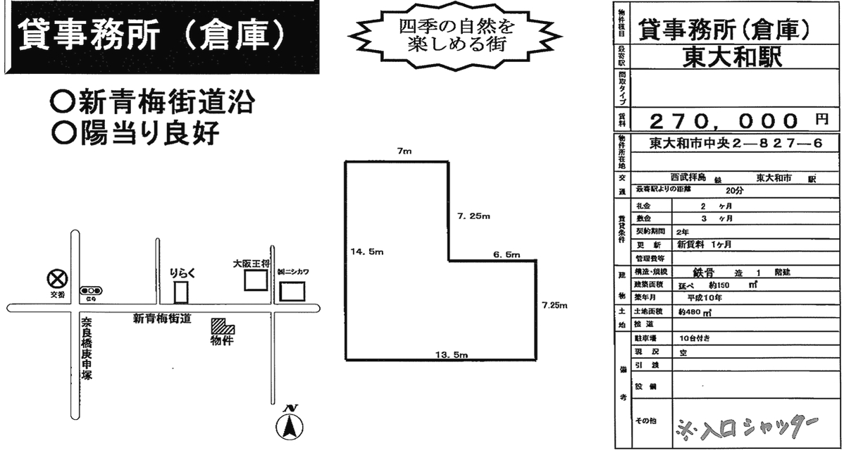 東大和市中央2-827-6 東大和市 倉庫事務所 詳細データ