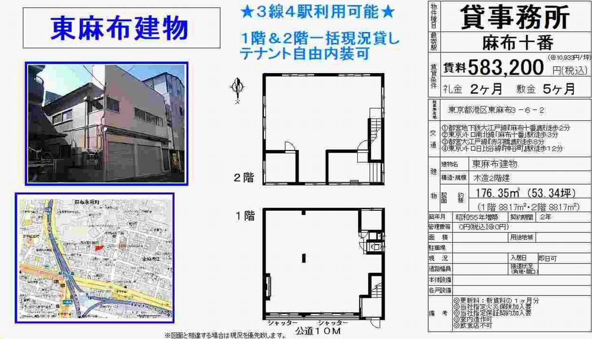 港区東麻布3-6-2 東麻布建物 1-2F部分 詳細データ