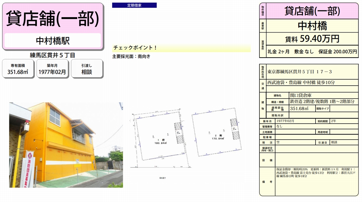 練馬区貫井5-17-3 中村橋 倉庫 詳細データ