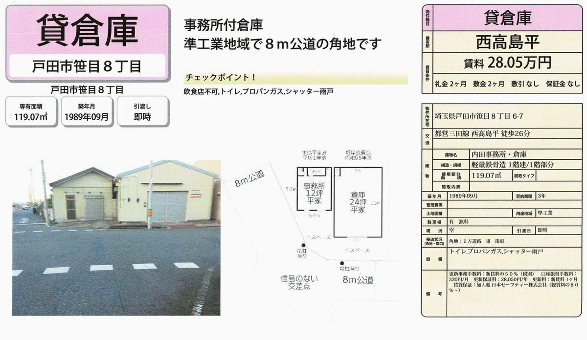 戸田市笹目8-6-7 戸田公園 貸倉庫 詳細データ