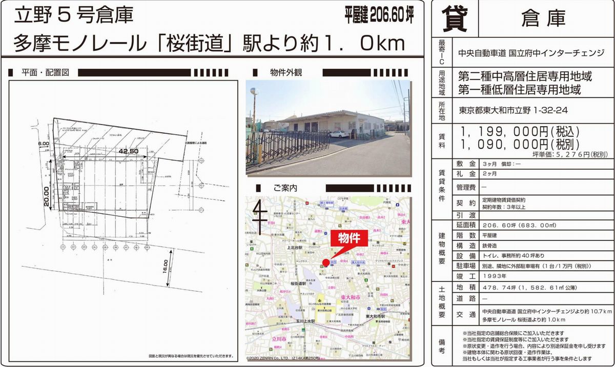 東大和市立野1-32-24 立野5号倉庫 詳細データ