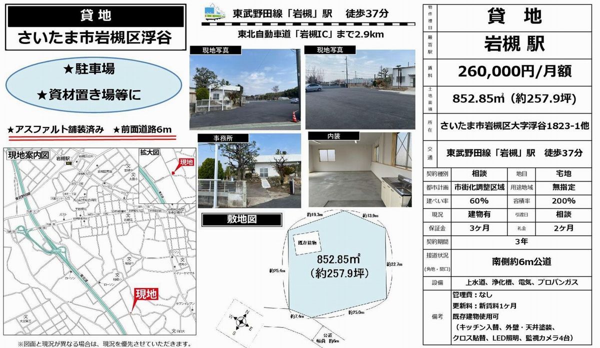 さいたま市岩槻区大字浮谷1823-1 岩槻 貸地 詳細データ