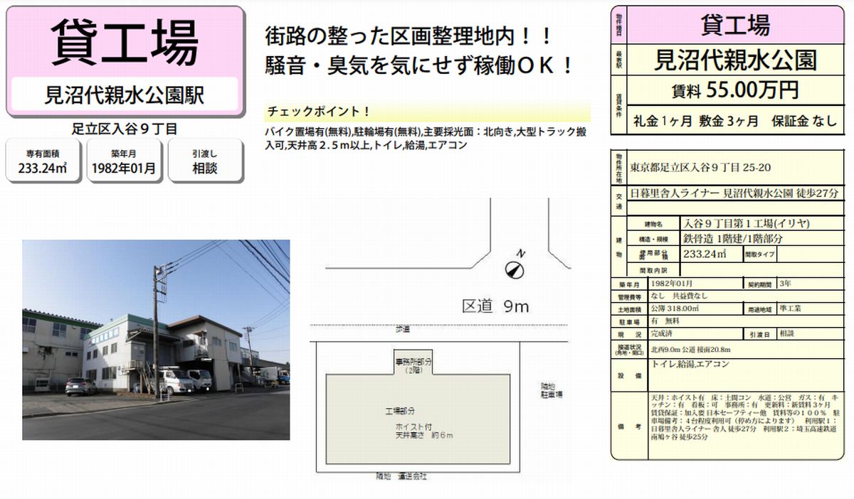 | 物件名 | 入谷9丁目工場 |