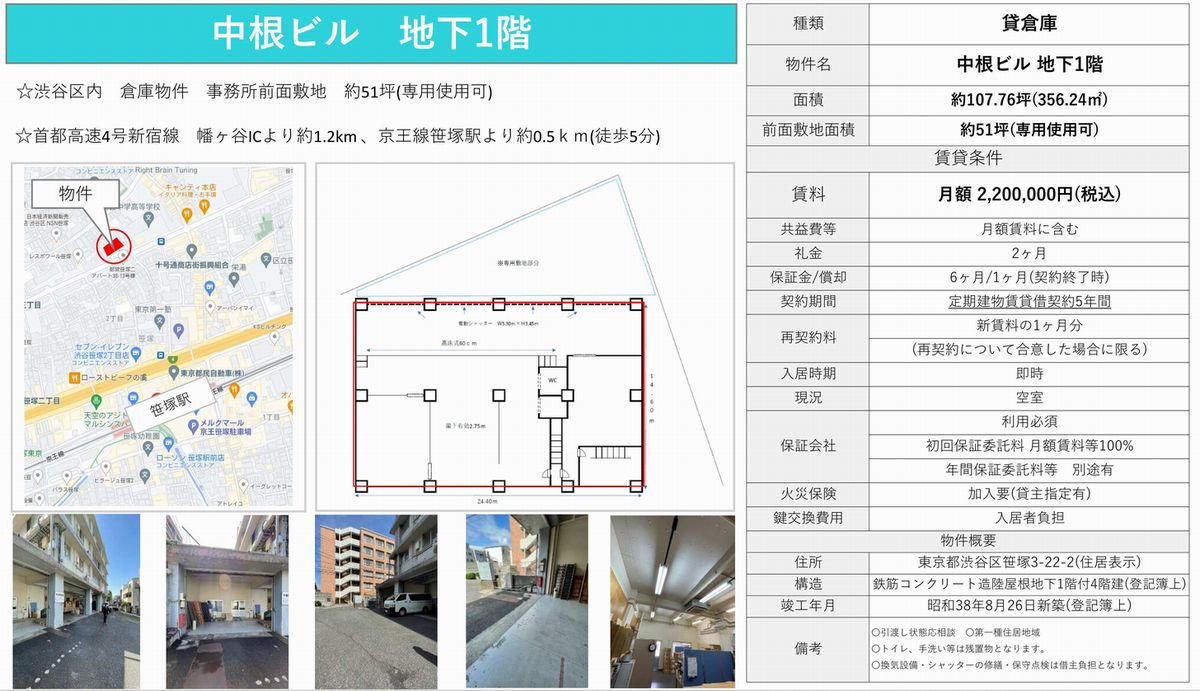 渋谷区笹塚3-22-2 中根ビル B1F部分 詳細データ