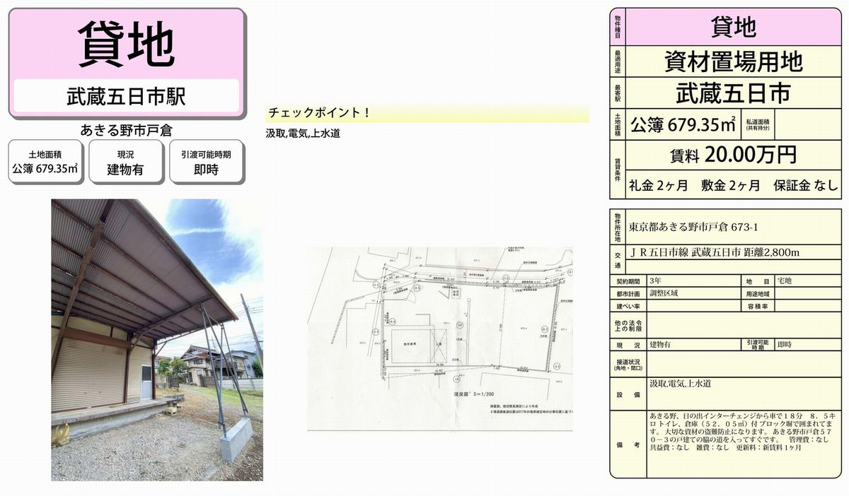 あきる野市戸倉673-1 武蔵五日市 貸倉庫 詳細データ