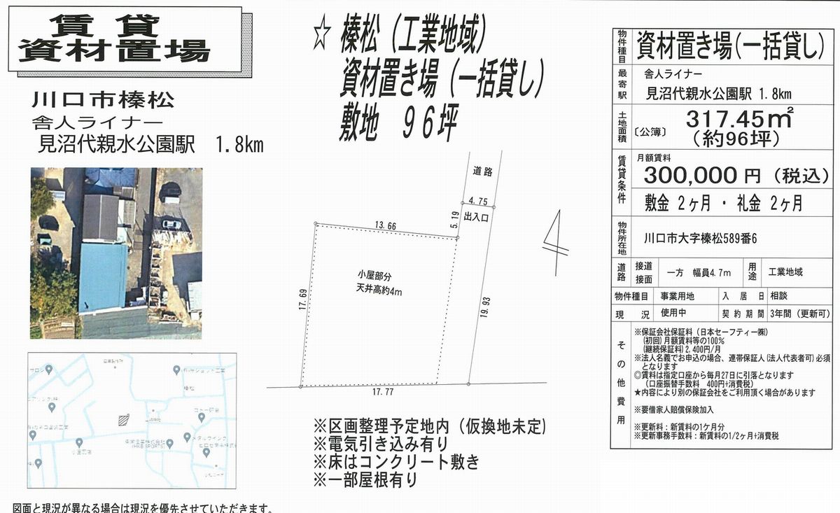 川口市榛松589-6 見沼代親水公園 貸地 詳細データ
