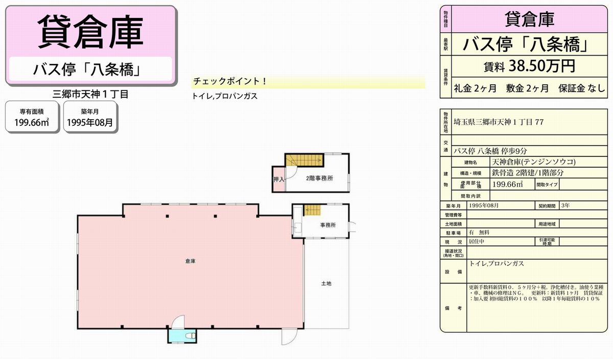 三郷市天神1-77をはじめ東京・神奈川・千葉・埼玉・横浜・川崎の貸倉庫・貸工場・賃貸土地の情報を検索できます。三郷市天神1-77の事務所付・ホイスト・クレーン付、キュービクル、工業地域の貸し倉庫・貸し工場もプロがお探しします。三郷市天神1-77の貸倉庫・貸工場・賃貸土地は物件数No1の不動産iLANDにお任せ下さい。三郷市天神1-77で貸倉庫・貸工場・賃貸土地を所有のオーナー様には貸し倉庫・貸し工場の広告を掲載致しますので是非、ご相談下さい。貸倉庫・貸工場・賃貸土地を貸したい方も、借りたい方も不動産iLAND! |