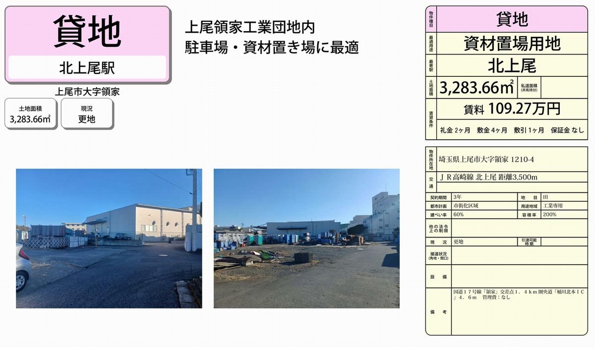 上尾市領家1210-4 北上尾 貸地 詳細データ