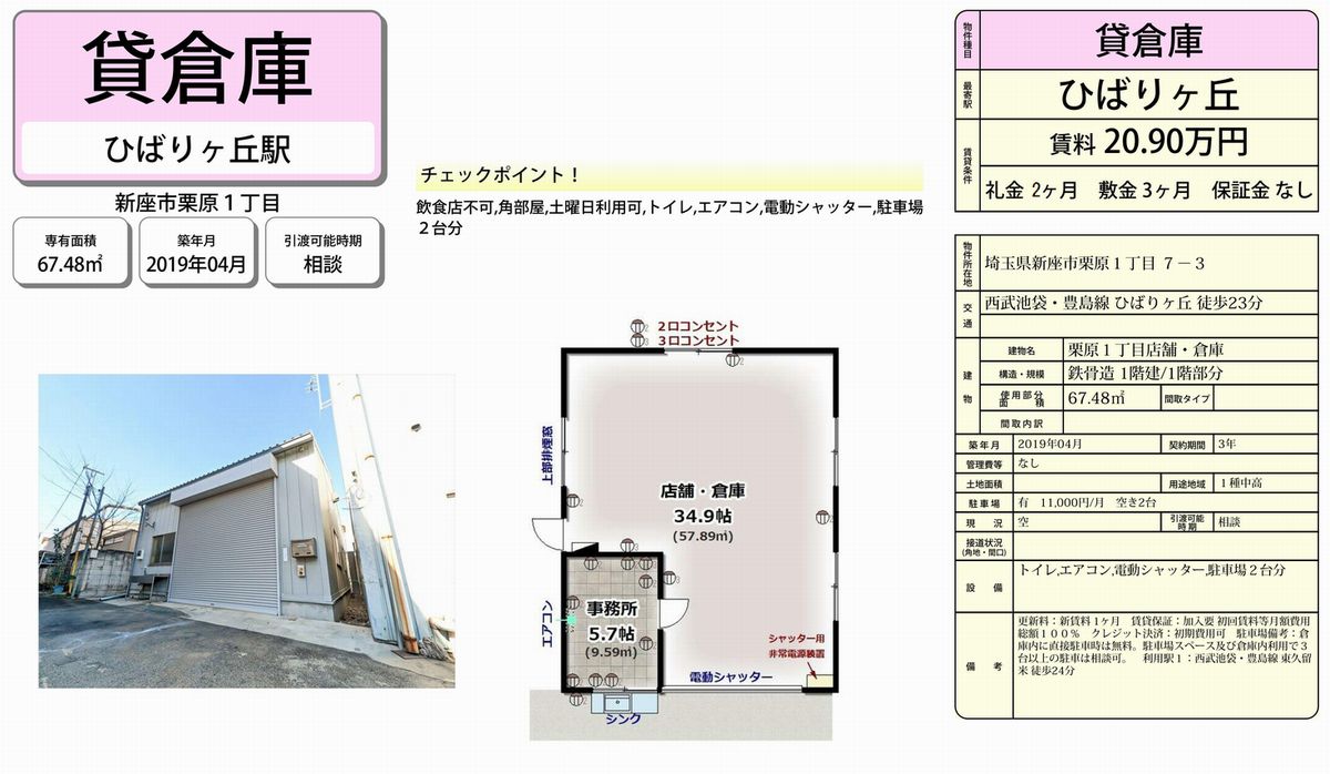 新座市栗原1-7-3 ひばりヶ丘 貸倉庫 詳細データ