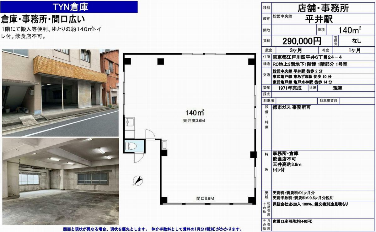 江戸川区平井6-24-4 TYN倉庫 詳細データ