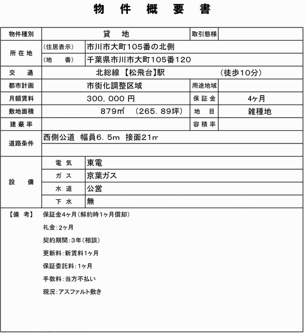 市川市大町105-120 松飛台 貸地 詳細データ