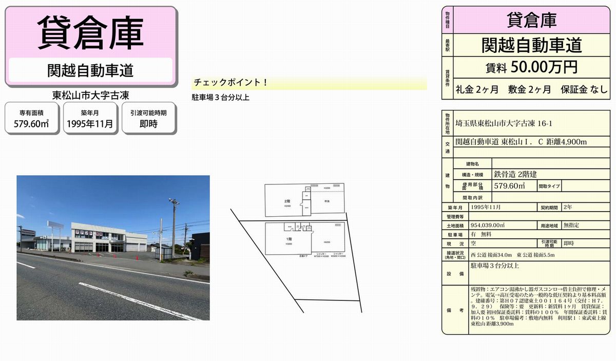 東松山市古凍16-1 東松山 貸倉庫 詳細データ