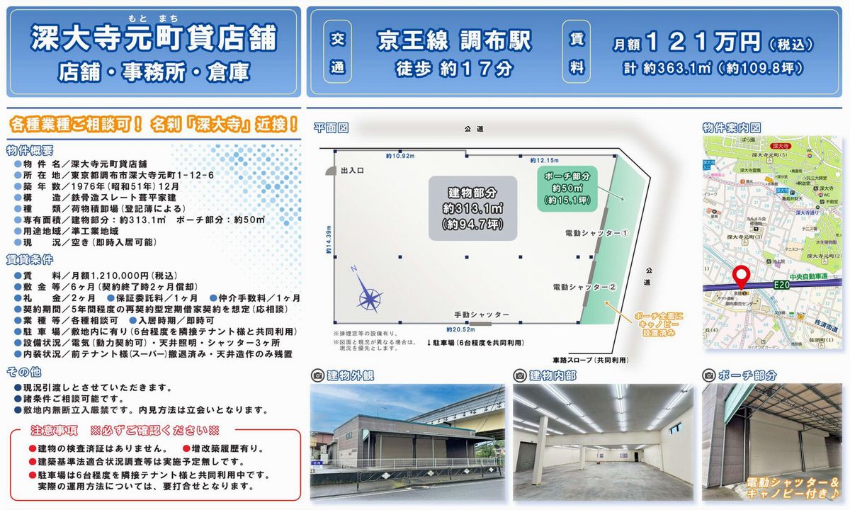調布市深大寺元町1-12-6 調布 貸倉庫店舗 詳細データ