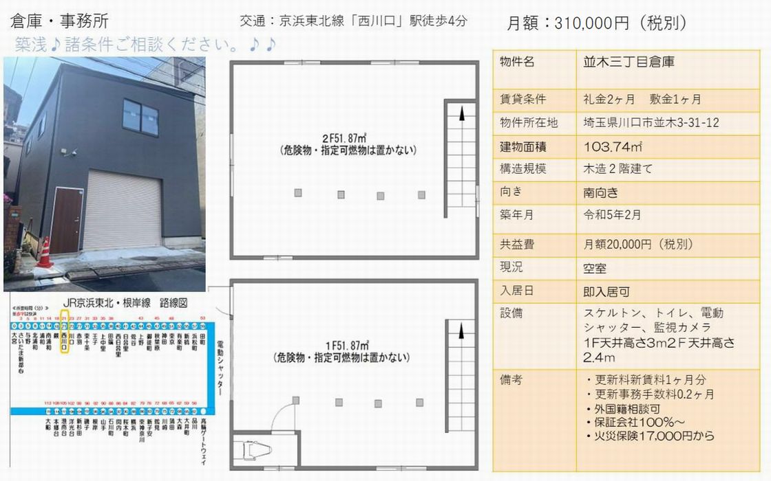 川口市並木3-31-12 並木3丁目倉庫 詳細データ