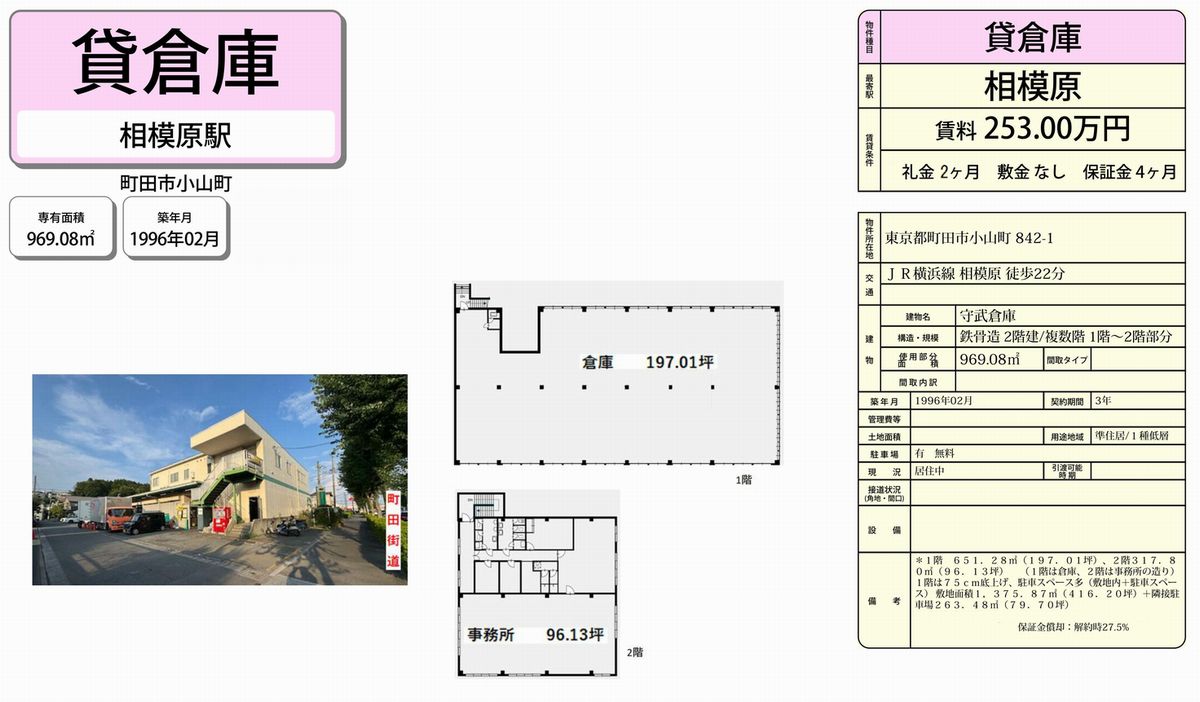 町田市小山町842-1をはじめ東京・神奈川・千葉・埼玉・横浜・川崎の貸倉庫・貸工場・賃貸土地の情報を検索できます。町田市小山町842-1の事務所付・ホイスト・クレーン付、キュービクル、工業地域の貸し倉庫・貸し工場もプロがお探しします。町田市小山町842-1の貸倉庫・貸工場・賃貸土地は物件数No1の不動産iLANDにお任せ下さい。町田市小山町842-1で貸倉庫・貸工場・賃貸土地を所有のオーナー様には貸し倉庫・貸し工場の広告を掲載致しますので是非、ご相談下さい。貸倉庫・貸工場・賃貸土地を貸したい方も、借りたい方も不動産iLAND! |