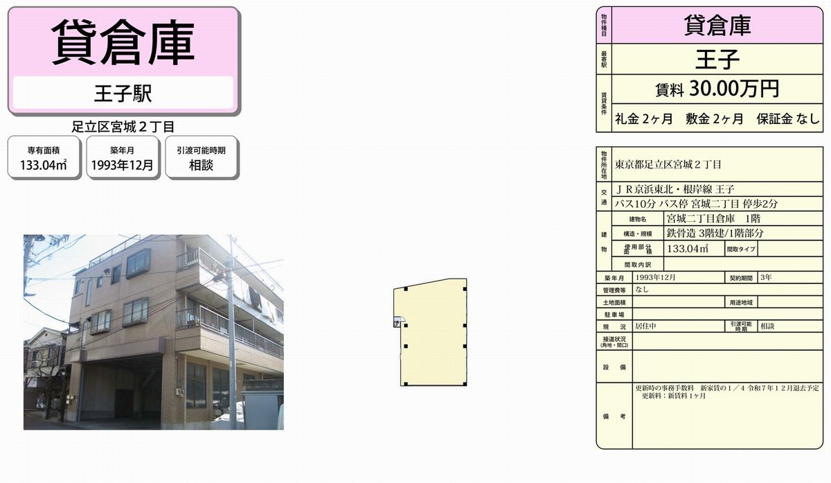 足立区宮城2-9-8 王子 貸倉庫 詳細データ
