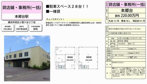 賃料(坪・円) | 坪 9,649 円 (総額 2,200,000 円) |