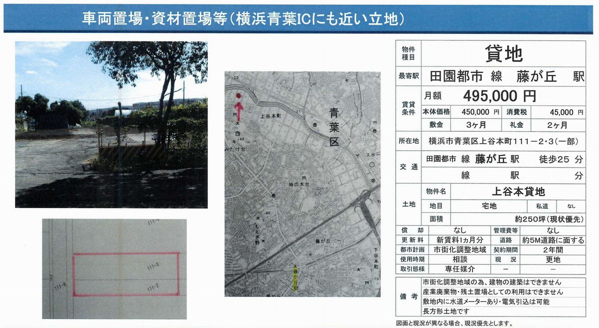 横浜市青葉区上谷本町111-2 藤が丘 貸地 詳細データ