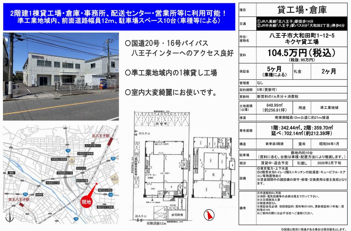 八王子市大和田町1-12-5 キクヤ貸工場 詳細データ