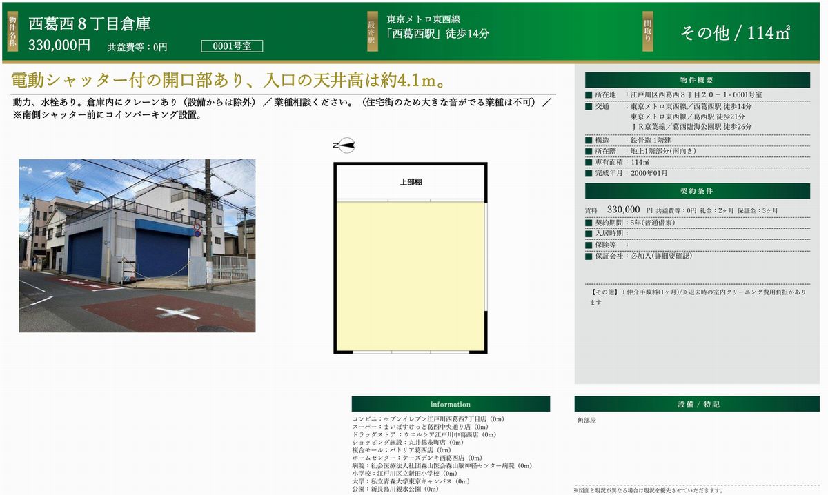 江戸川区西葛西8-20-1 西葛西 貸倉庫 詳細データ