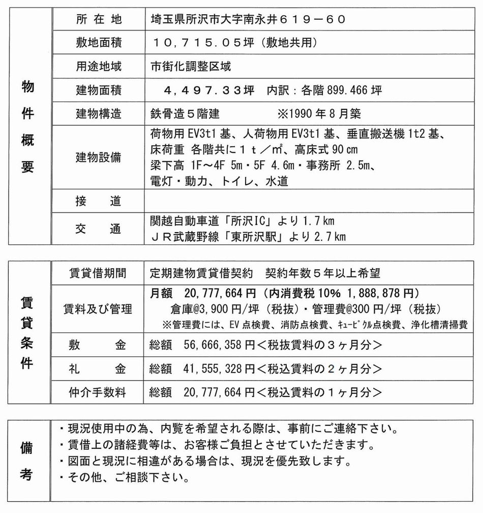 | 物件名 | 東所沢 貸倉庫 一棟貸 |