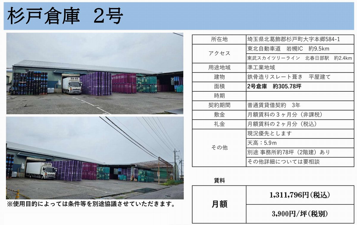 北葛飾郡杉戸町本郷584-1 杉戸倉庫2号 詳細データ