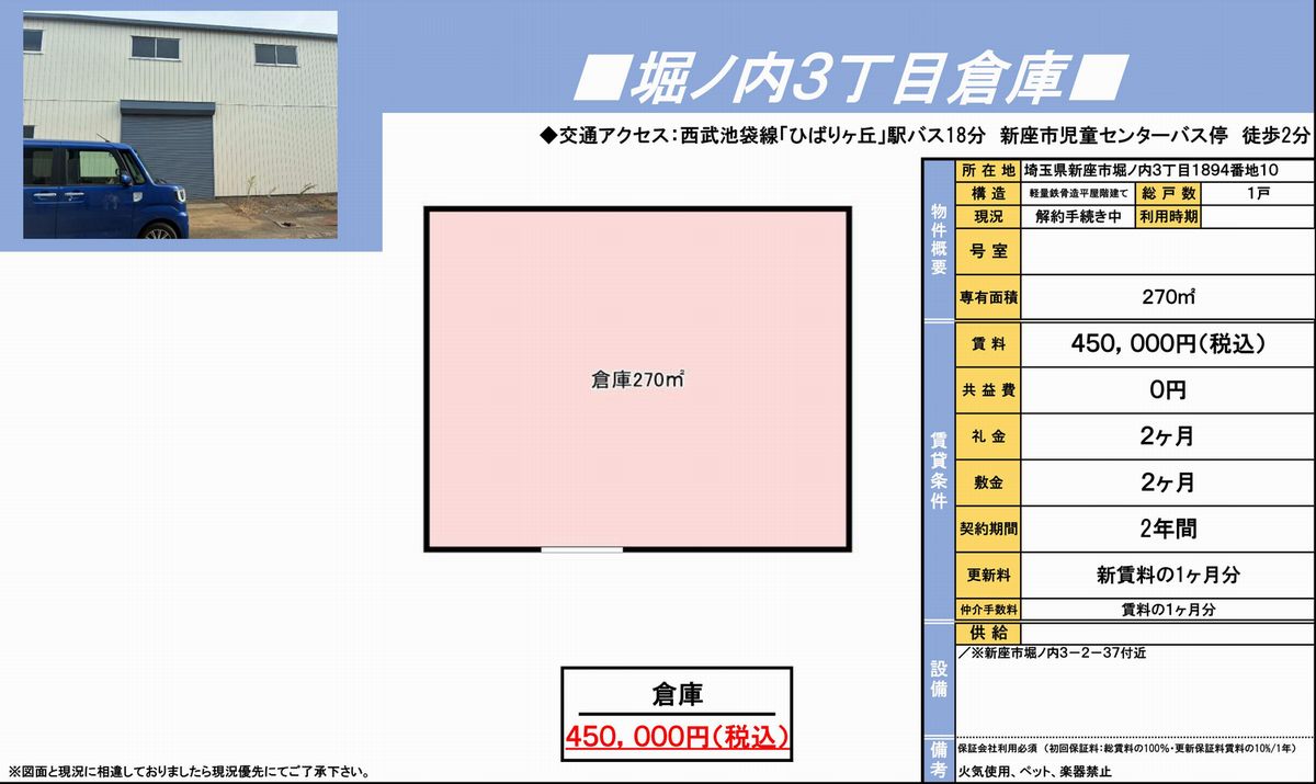 新座市堀ノ内3-1894-10 堀ノ内3丁目倉庫 詳細データ