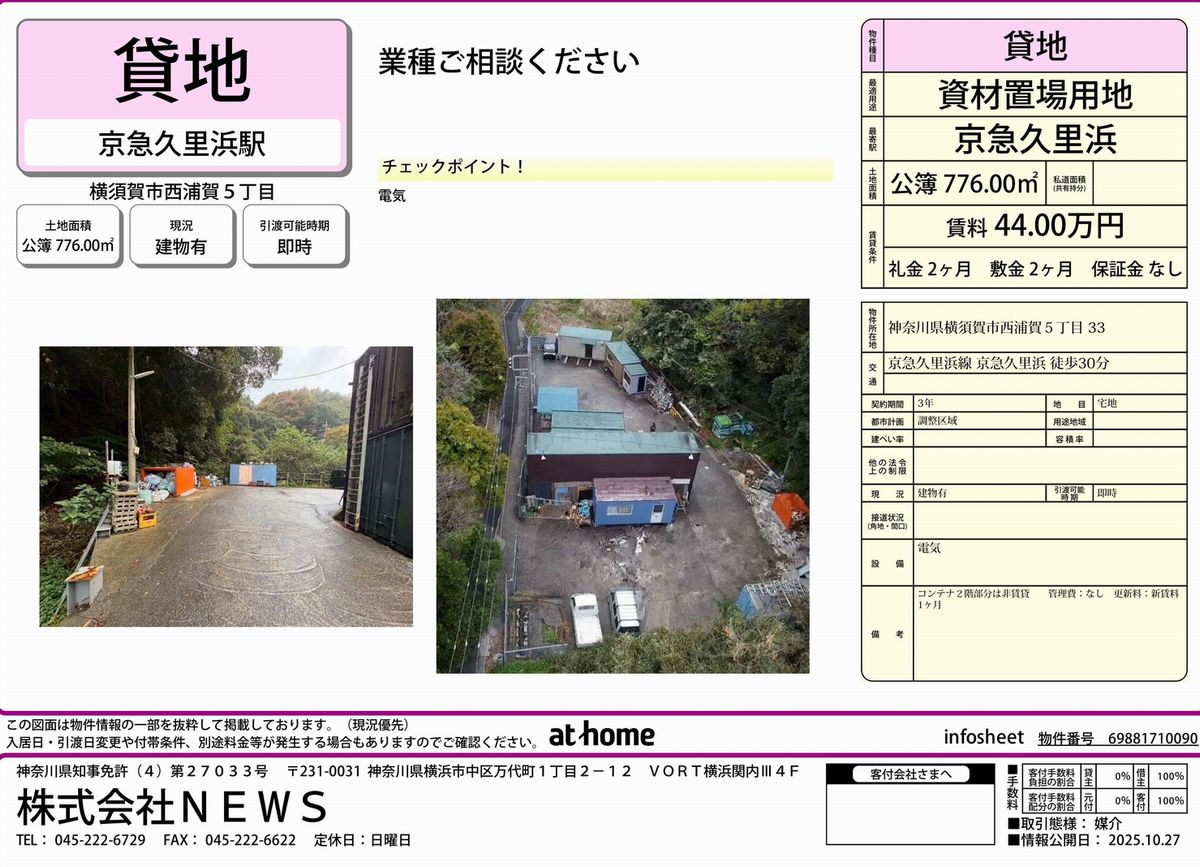 横須賀市西浦賀5-33 京急久里浜 貸地 詳細データ
