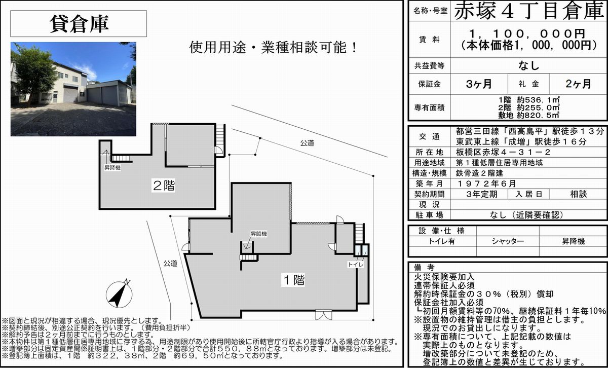 板橋区赤塚4-31-2 西高島平 貸倉庫 詳細データ
