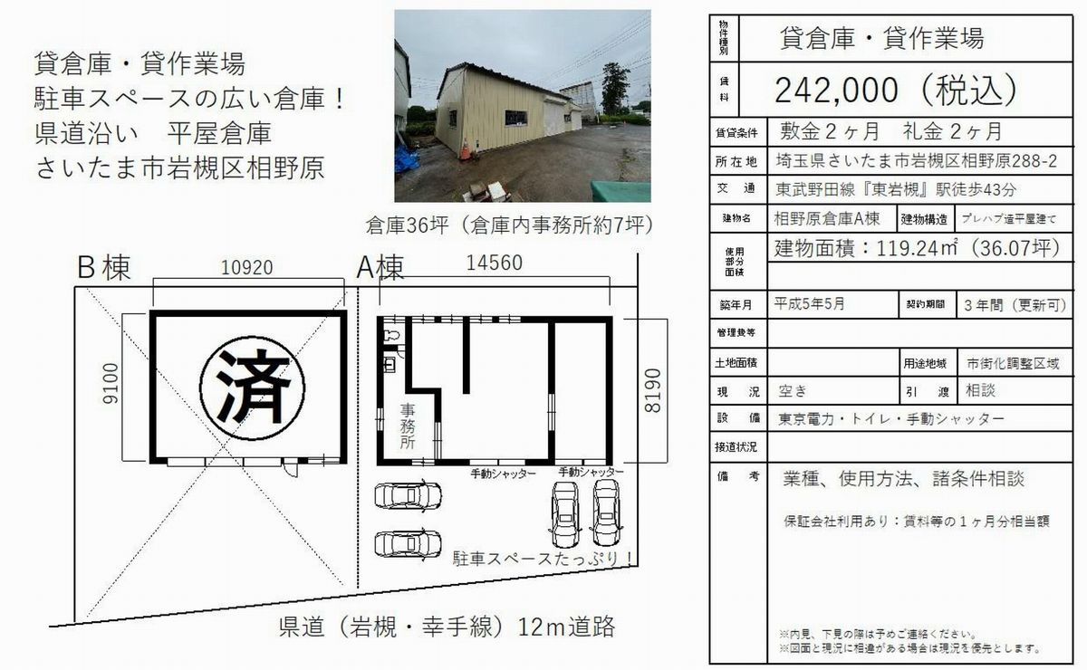 さいたま市岩槻区大字相野原288-2 相野原倉庫A棟 詳細データ