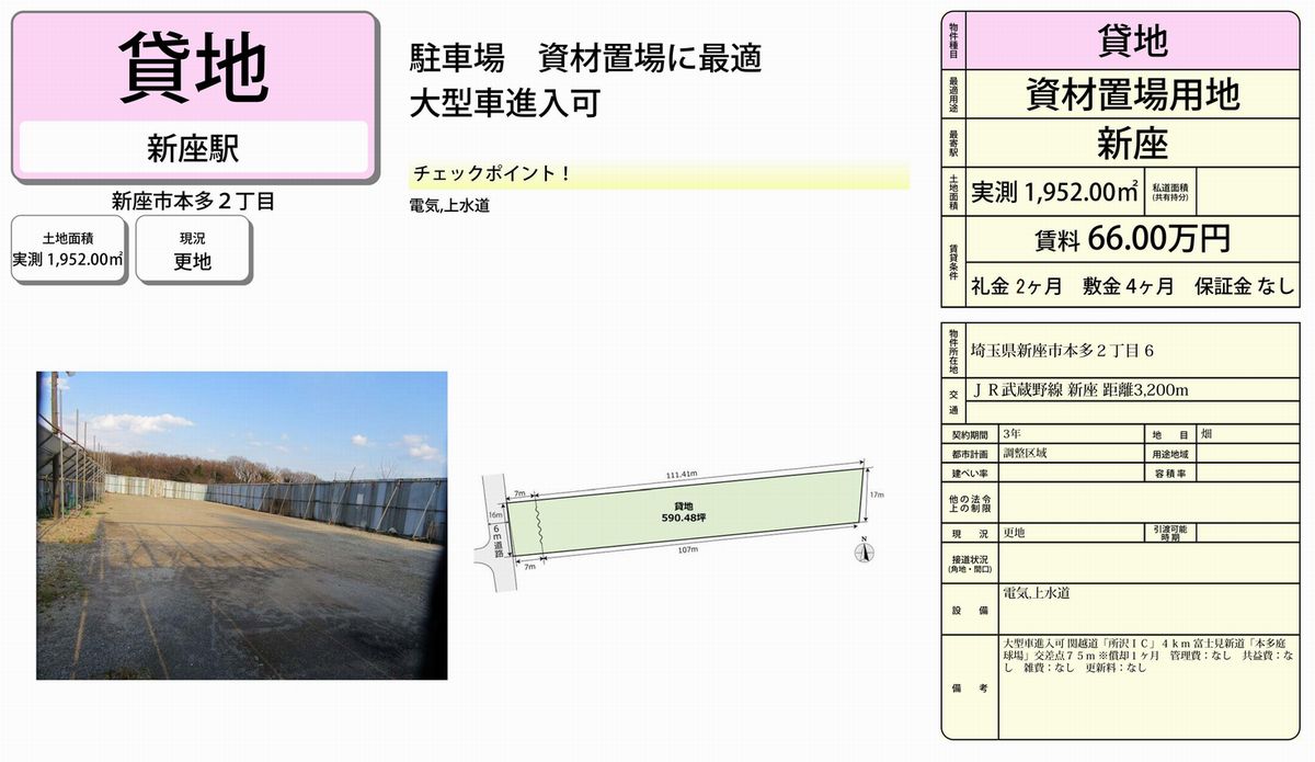 | 備考 | 資材置き場・駐車場 安全鋼板有 |