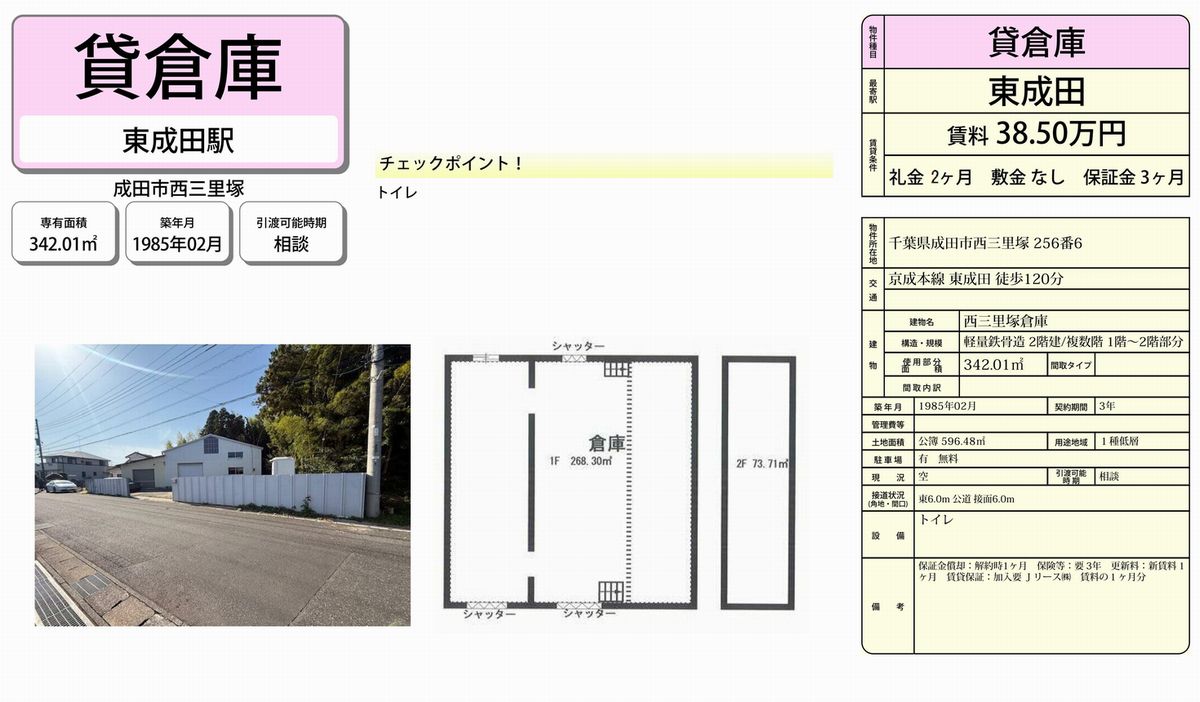 成田市西三里塚256-6 西三里塚倉庫 詳細データ