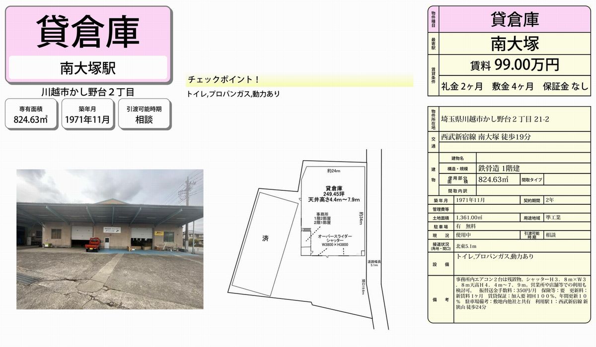 川越市かし野台2-21-2 南大塚 貸倉庫 詳細データ