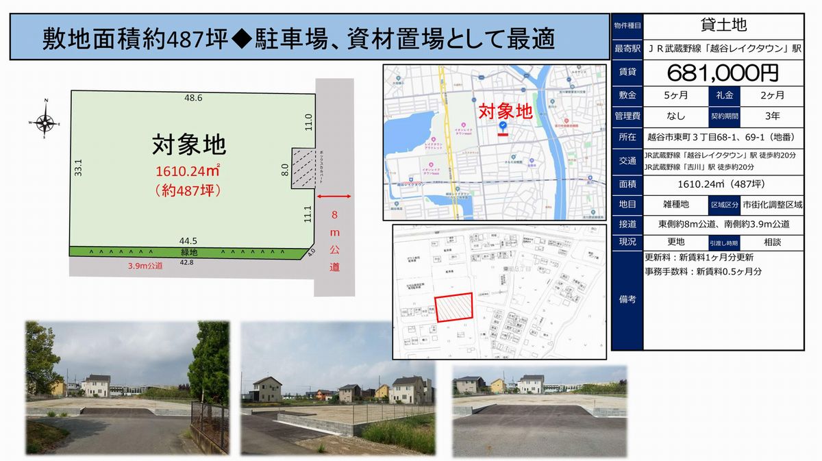 越谷市東町3-68-1 越谷レイクタウン 貸地 詳細データ