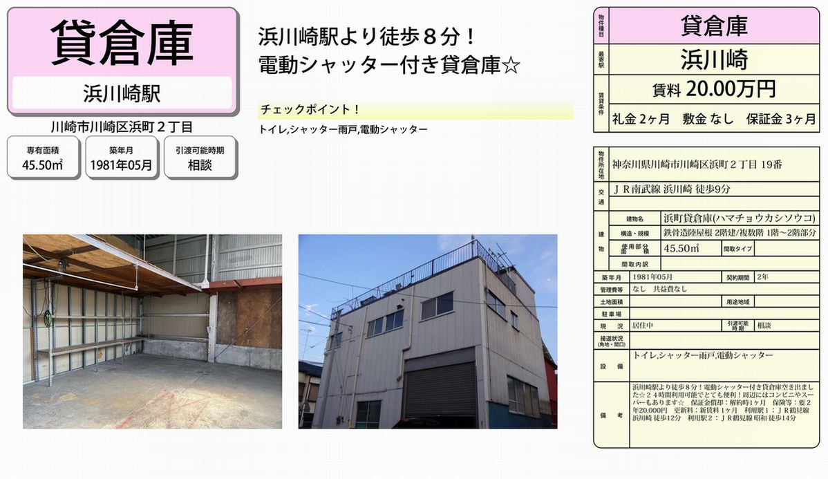 川崎市川崎区浜町2-19 浜町貸倉庫 詳細データ
