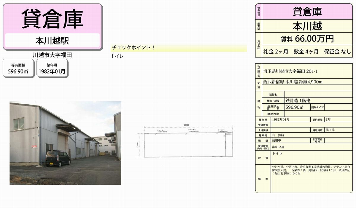川越市福田201-1 本川越 貸倉庫 詳細データ