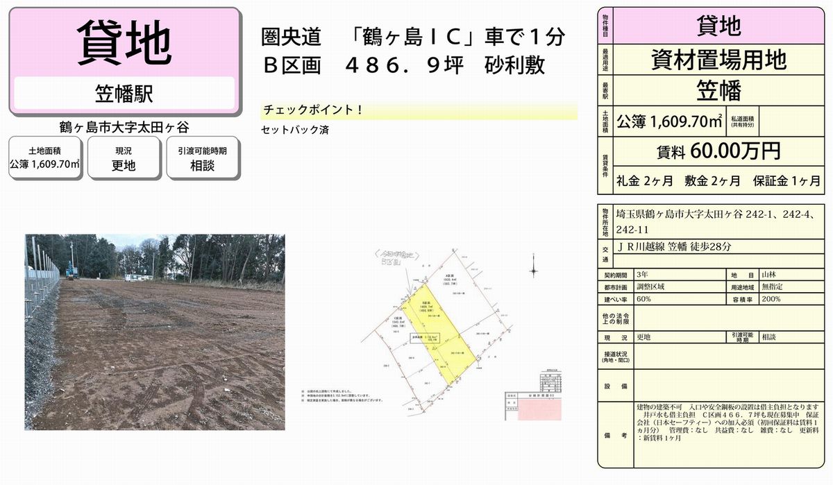 鶴ヶ島市太田ヶ谷242-1 笠幡 貸地B 詳細データ